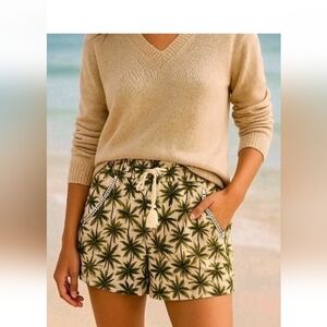 Briggs Linen Blend Pull-On Shorts Palm Tree Print Women's Size S New w/Tags