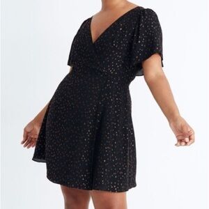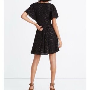 Madewell Cape Sleeve Mini Dress in Metallic Dots Black Size 2 New NWOT