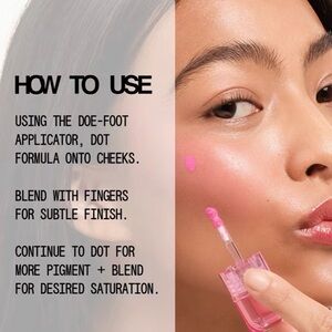 A super-saturated liquid blush delivered in a buildable, blendable formula with maximum color payoff and long-lasting endurance.