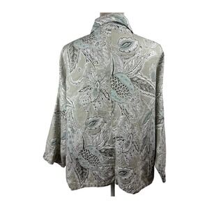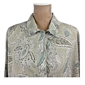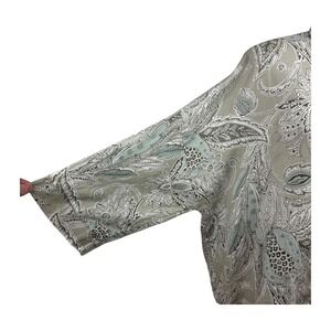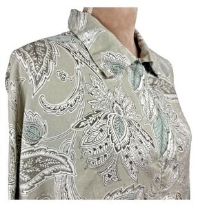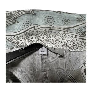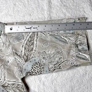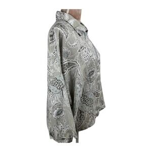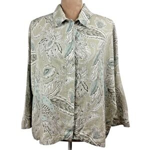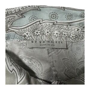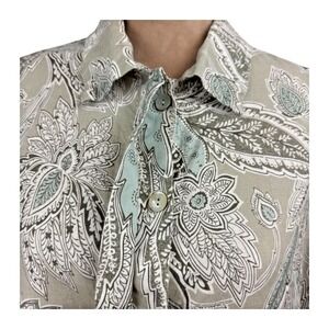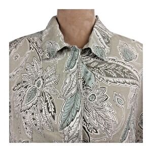 Bryn Walker Womnes Linen Top Jacket Tan Blue Paisley 3/4 Sleeve Button Up Sz Lg