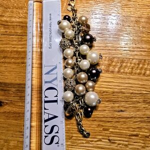 Stella & Dot Audrey Cluster Bracelet, Gold-tone Faux Pearls and Crystals. Retired Vintage Design.
