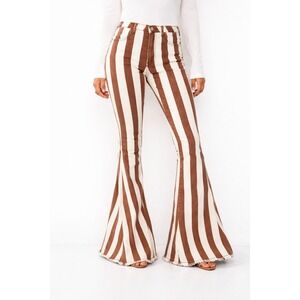 Saints & Hearts Brown White Striped High Rise Bell Bottom Flare Jeans 27 x 32