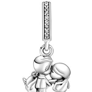 Charming silver couple pendant. Features a romantic kissing 😘 design. Perfect for bracelets or necklaces.