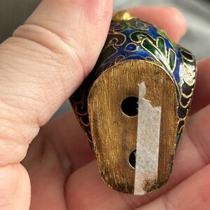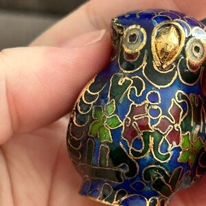 This exquisite cloisonné owl figurine features vibrant blue, green, and gold colors. Perfect for adding a touch of elegance to your small pet's environment.