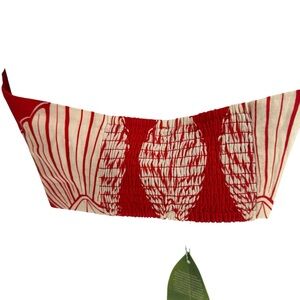 Beautiful sold-out FARM Rio Ainika Shell print cropped halter top in the red & white coastal shell pattern. This lightweight linen-blend top features a flattering fitted silhouette with a smocked elastic back for comfort and easy fit. Perfect statement piece for warm weather and vacation styling.