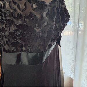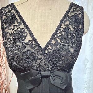 Vintage Miss Elliette 1970’s Elegant Black Lace Top Dress with Bow Detail size10