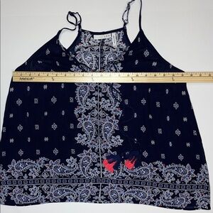 Discover elegance with this navy blue paisley camisole, perfect for any occasion. Its intricate design adds a touch of sophistication to your wardrobe.