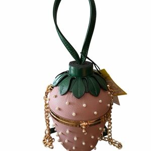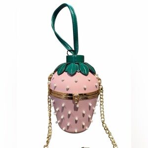 Fun fashion strawberry shaped bag. Hard core with adjustable crossbody strap