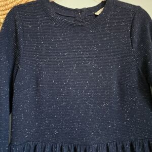 LOFT Navy Flecked Button Back Knit Oversized Long Sleeve Swing Dress SZ Medium P