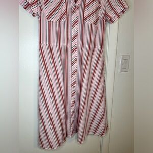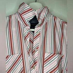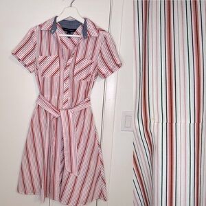 Tommy Hilfiger shirt dress cotton vertical stripe pink white button down belted