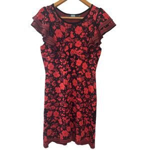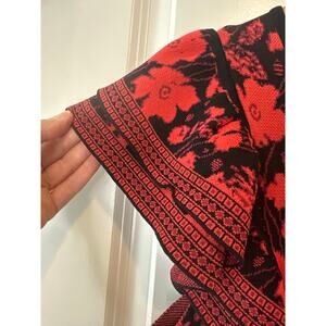 Anthropologie Eva Franco Ruffled Floral Knit Mini Sweater Dress Red Size L