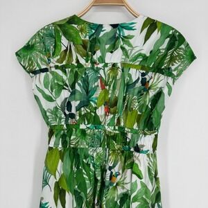 Antonio Melani Tropical Print Midi Dress Size 2 Green Botanical Resort Chic
