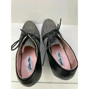Heel booties with gray pattern, shoe lace detail Size: 7.5
