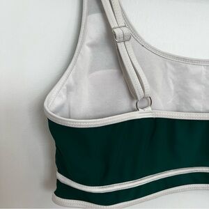 Dive into style with this emerald green bikini top, offering a sleek and modern look for your beach adventures.