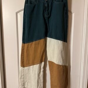 Cider Teal, Cream, Camel Patchwork Pants