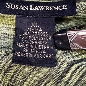 Susan Lawrence Career Blouse Top Lime Green Black Brushed Neck Tie Sleeveless XL wear it tied or untied, flattering wide bottom hem, center seam in back. Measures 22”P2P, poly/spandex. Great for office or evening paired with jacket or sweater. Combine career clothes for bundle discount.