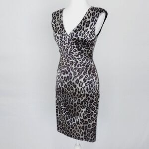 Cache Women's Leopard Animal Print Dress - Size 0 Silver/Black