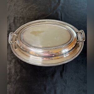 Beautiful silver serving dish with a matching lid. Perfect for formal dining.