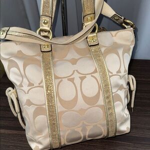 Coach Poppy Beige and Gold Women's shoulder and cross body Bag