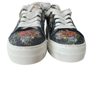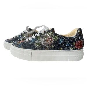 Betsey Johnson "Sidny" Rhinestone Platform Sneakers – Navy Floral Size 7