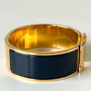 This beautiful Clic Clac H bracelet features rich navy enamel with gold-plated hardware — an elegant, timeless combination that works year-round.