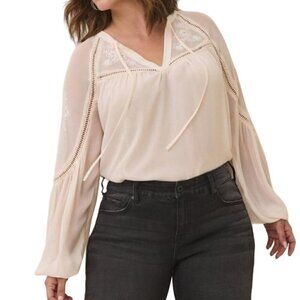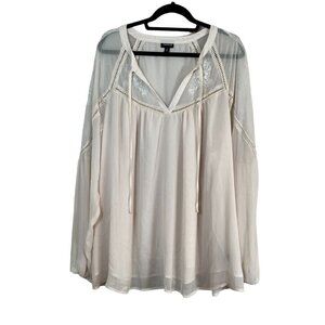 Torrid Floral Top 4X Ivory Crinkle Embroidered Boho Western Retro Indie Folk 80s