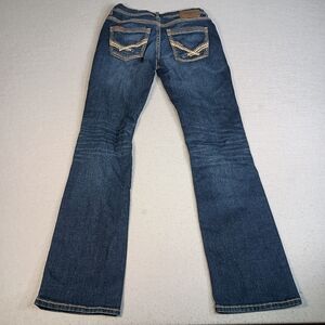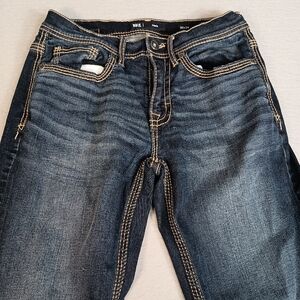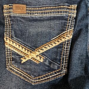 BKE Aiden Men's 30x34 Dark Wash Blue Embroidered Whisker Straight Leg Jeans