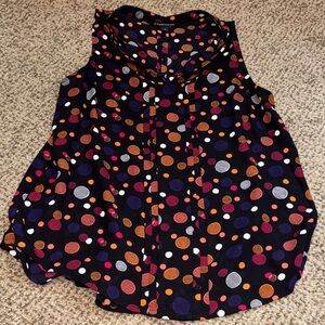 Excellent condition. Worn 2 to 3 times. Purchased from Stitch Fix. Black background with purple, pink, orange and white in the polkadot pattern. Size small. See photos for measurements. All items come from a smoke free home. Bundle two or more items and save 20%.