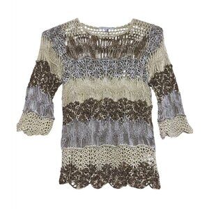Gold Silver Lamé Crochet Mesh Net Sweater S Fisherman Open Knit Disco Y2K Style