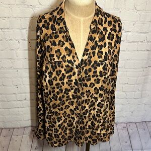 Dana Buchman Animal Print button up long sleeve mob wife Top