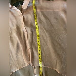 Elegant sheer blouse with a peachy metallic sheen (Model shown is by a different designer this shirt looks and fits the same)