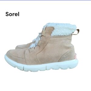 Sorel Explorer Next Carnival Waterproof Ankle Suede Shearling Fur Winter Boot Cream Peach Tan Women 8.5