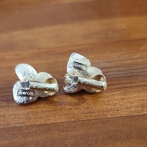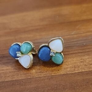 AVON Blue and Green Floral Clip On Earrings with Vintage Design