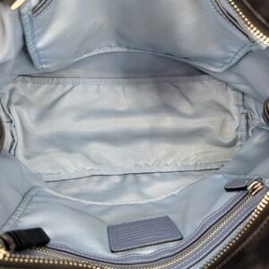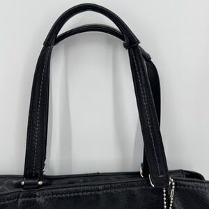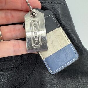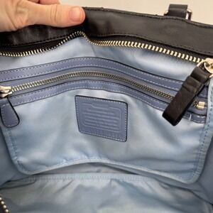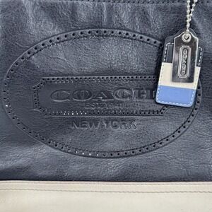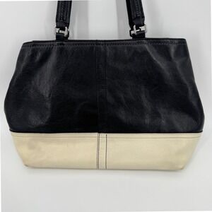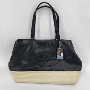Coach Hamptons Weekend Perforated Tote Black Cream Leather Large Shoulder Bag