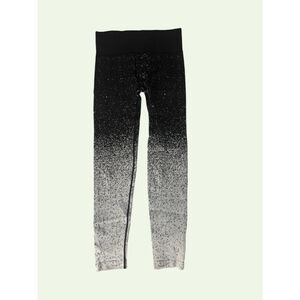 These Zella women's leggings in size S feature a black-to-white ombre design with a speckled pattern. The top portion is solid black, transitioning to white at the ankles. The fabric is ribbed with a wide, elasticized black waistband is visible.
