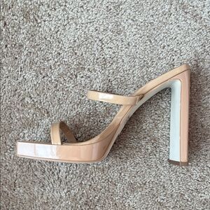 Sexy Beige Patent Leather Square Toe Block Heels!!