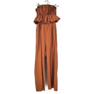 ASTR the label ruffle top jumpsuit linen cotton rust brown size S
