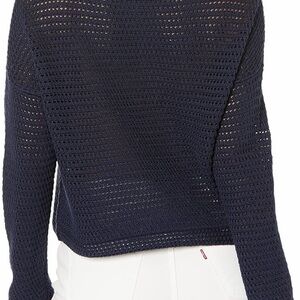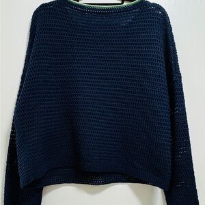 Elegant navy blue sweater with a unique green trim. Perfect for layering and versatile styling.