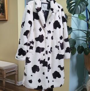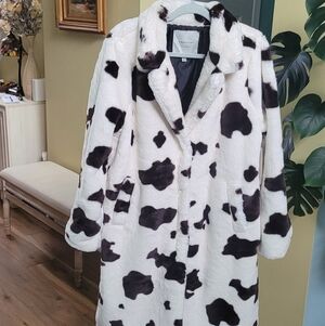 Stay warm and stylish with this chic cow prints brown and cream faux fur coat. Perfect for adding a touch of elegance to any outfit.