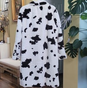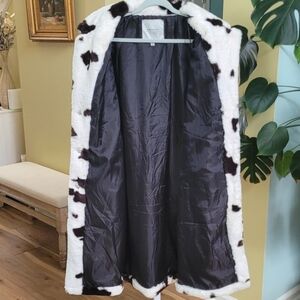 AMBER SKY Cow-Print Faux Fur Women Coat-Brown/Cream Size XL