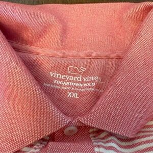 Vineyard Vines Men’s Edgartown Polo - sort of a light red and white stripe pattern. Excellent condition - perfect for a day of golf or for watching a game. Size XXL - measurements shown in photos.
