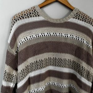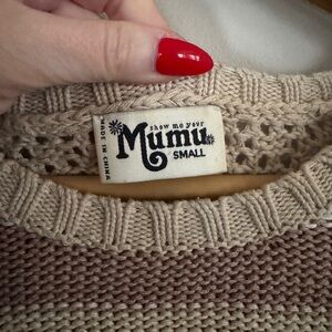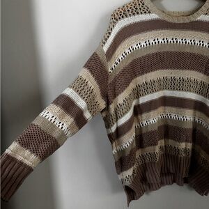 Show Me Your Mumu Yala Tan Cream Striped Crochet Sweater Tunic. Ribbed cuffs. Oversized and chunky. Size small. Perfect condition with no issues.