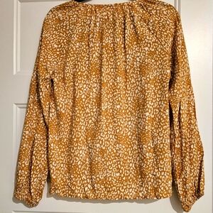 Savanna Jane Marigold Long Sleeve Colorful Embroidered Blouse with Leopard Print and Tie at the Neckline. Beautiful Colors and Flowy Soft Rayon Material. In Excellent Condition.