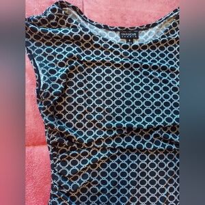 Beautiful Enfocus Studio dress in size 8, featuring a bold black-and-white circular print that really stands out. The dress has a fitted bodice, short sleeves, and a flowy, asymmetrical hemline that creates a flattering silhouette on any body type. Perfect for work, church, date nights, or semi‑formal events.
