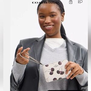 Coach Corner Zip Wristlet Wallet With Cherry Charm , beautiful in pristine condition, Cherry Charm Included, also free gift with every purchase