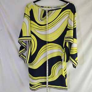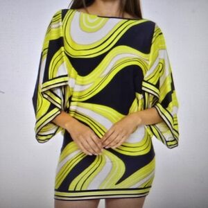 Trina Turk Serena Swirl Yellow Navy Stretch Swim Cover Up Dress Tunic Mini Small