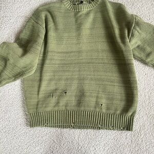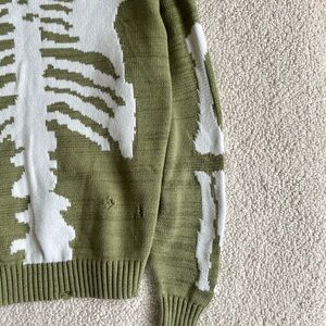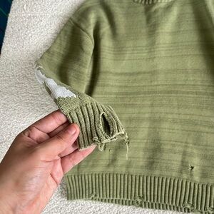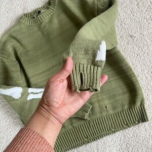 Grunge Chunky Olive Green Skeleton Pattern distressed Sweater S