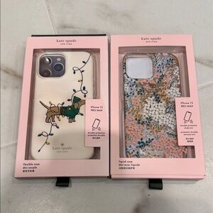 Chic kate spade cases for iPhone 13 Pro Max. Features playful Christmas Claude dog and Pride floral designs. Stylish protection for your phone. In good condition.
