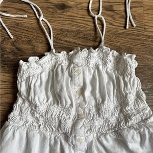 Elegant white sundress with smocked bodice and delicate straps. Ideal for warm weather.