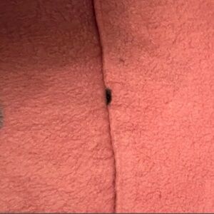 • Flaws: Includes one small dark spot/stain near a seam (pictured—has not been treated). The fabric shows some light typical fleece wash wear/pilling; it is still very soft but could benefit from a quick pass with a fabric shaver to look like new.